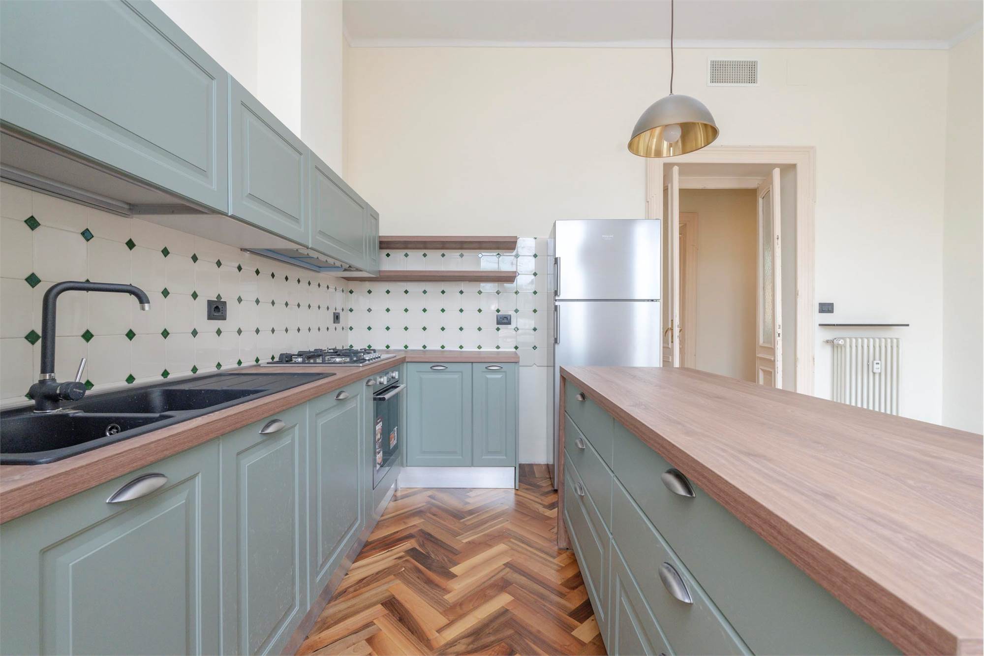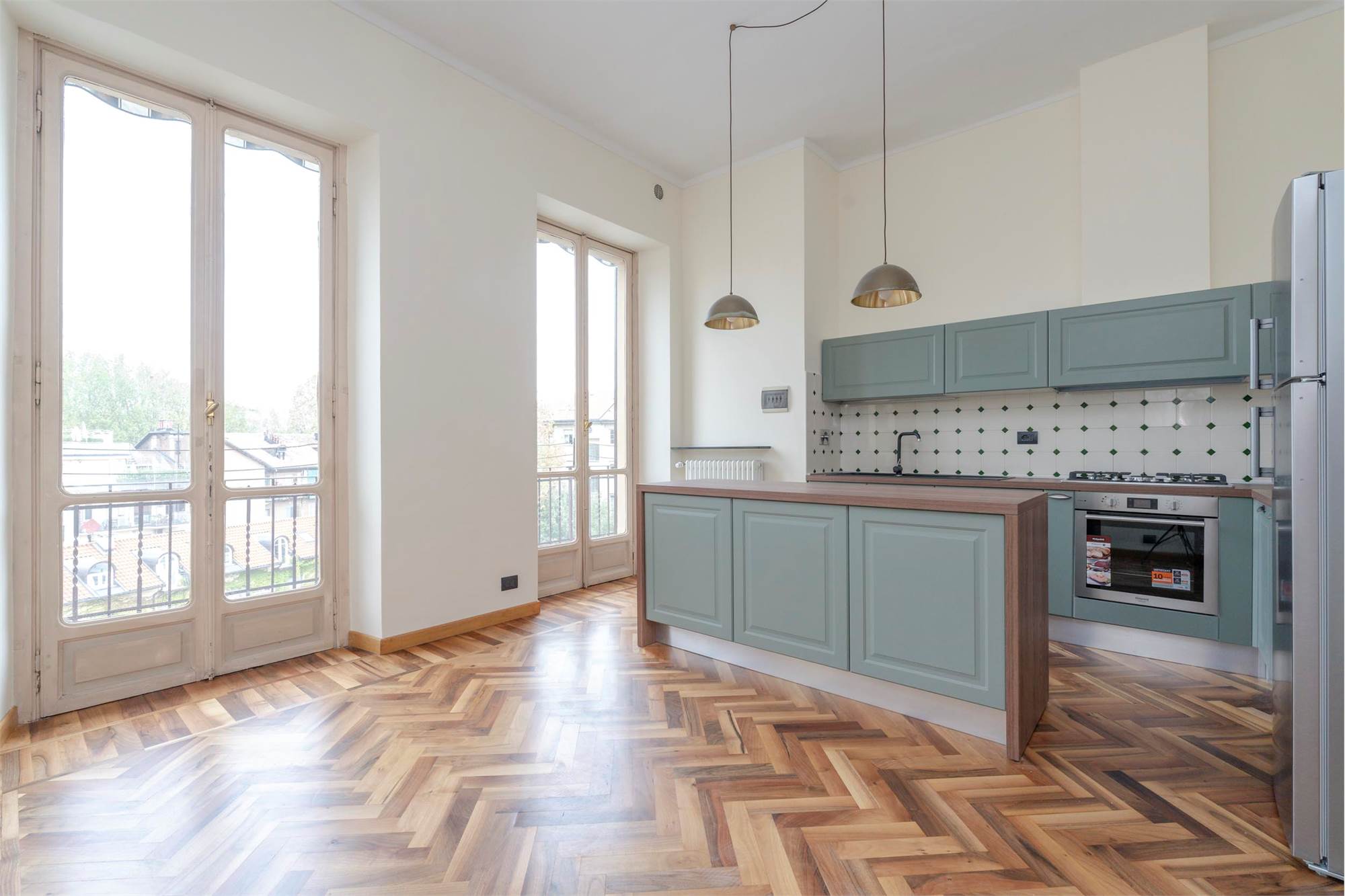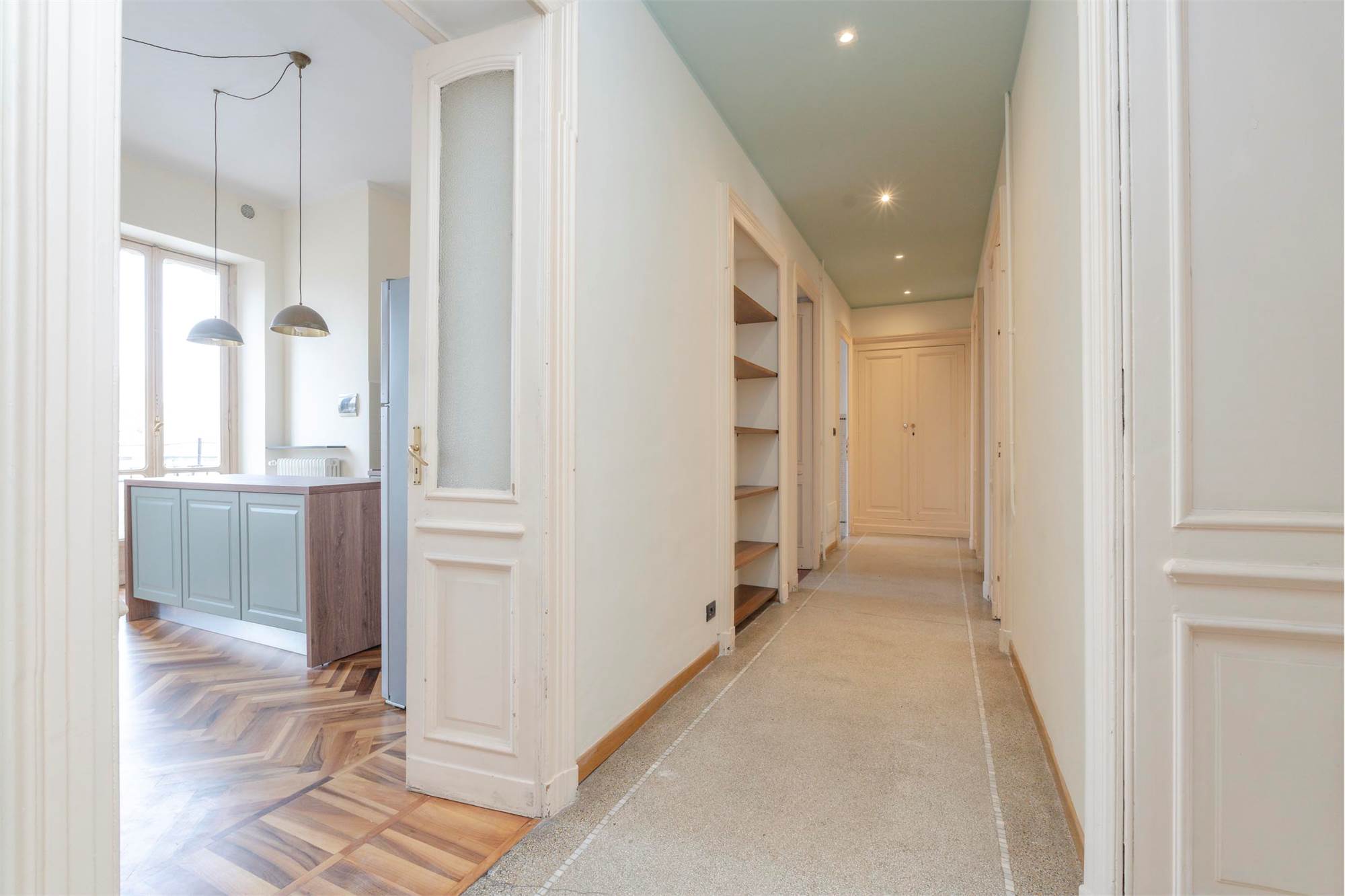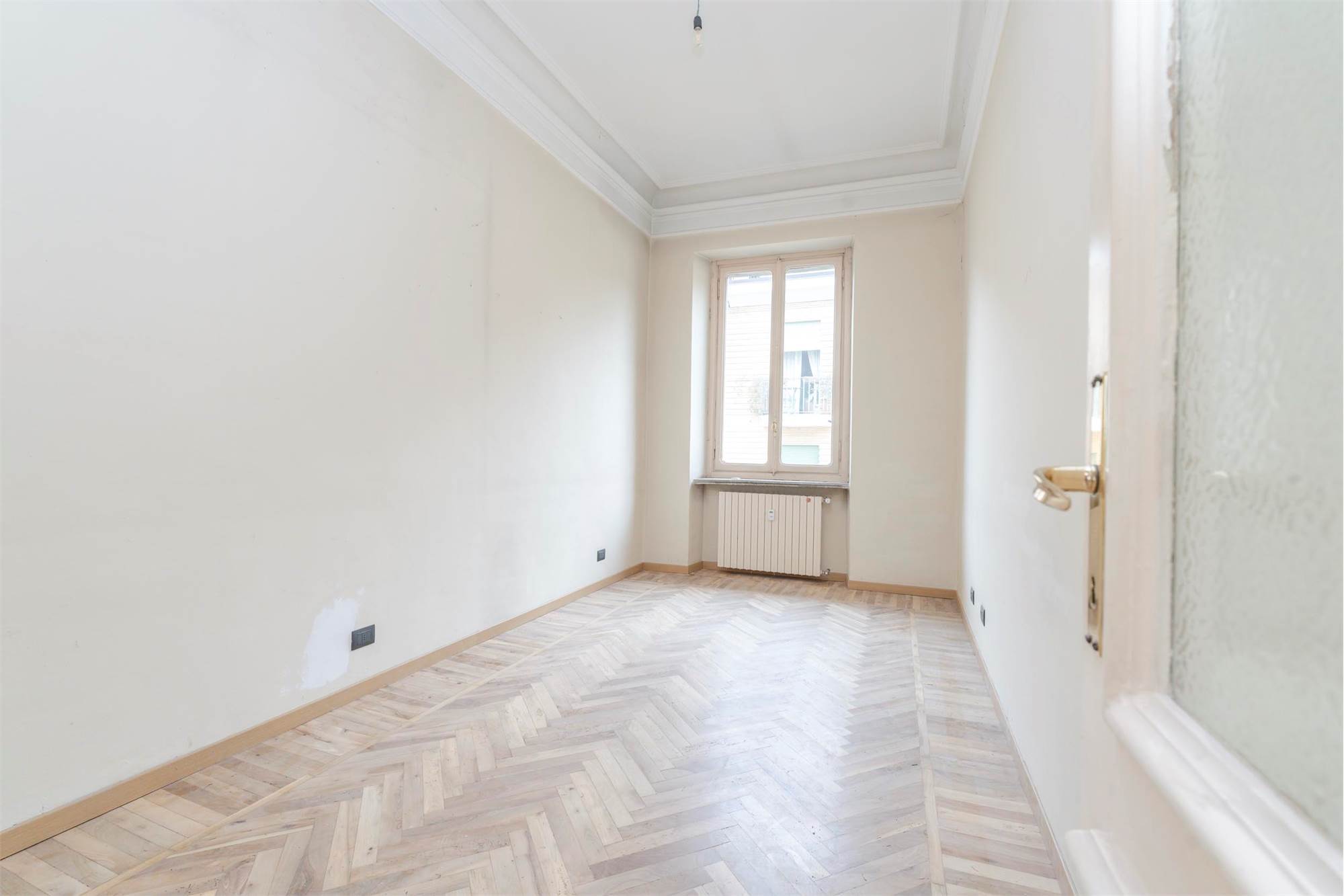 Zona Crimea - Con vista sulla Mole Antonelliana, i monti e la colina; Appartamento di generosa metratura ristrutturato nelle pavimentazioni in legno, si compone da ingresso salone triplo angolare, tre camere da letto, cucina arredata a nuovo con ampia zona pranzo, doppi servizi, lavanderia, cantina. Possibilità di box auto in cortile. Predisposizione aria condizionata. Libero. Preferenza a trasferisti.